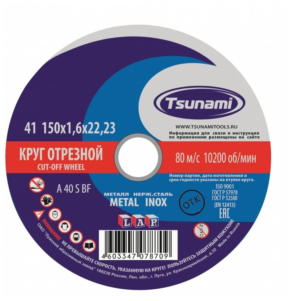 TSUNAMI Круг отрезной по металлу TSUNAMI A 40 S BF Pg, 150 х 22 х 1.6 мм
