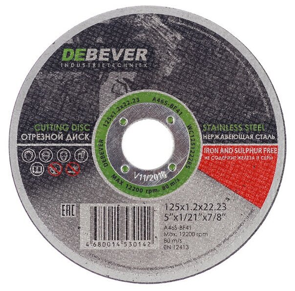 Диск отрезной по нержавеющей стали и металлу (125х22х1.2 мм) DeBever NWC12512228S информация: