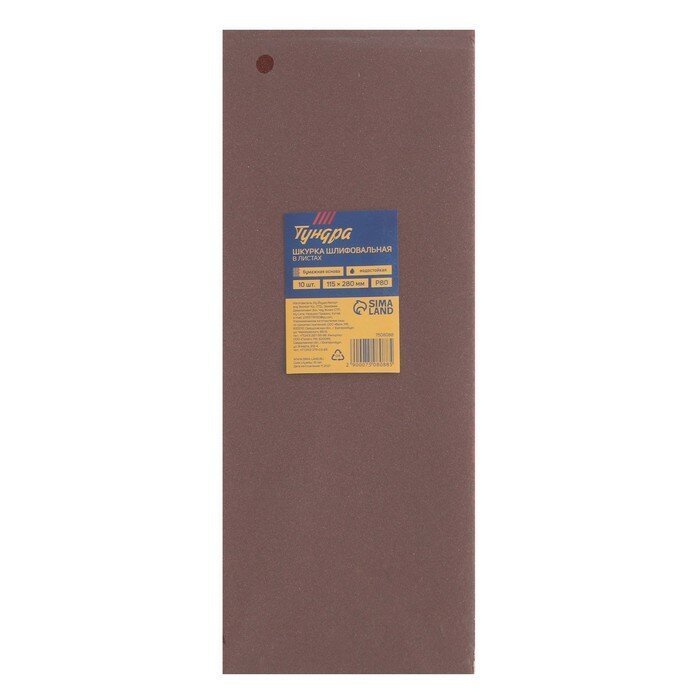 Шкурка шлифовальная в листах тундра, на бумажной основе водост., 115 х 280, Р80, 10 шт. информация: