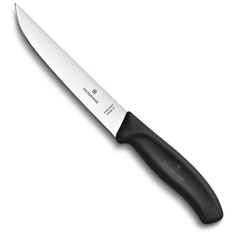 Нож Victorinox разделочный, узкое лезвие 15 см прямое, чёрный, в блистере