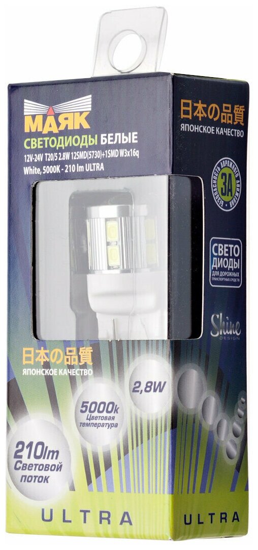 Маяк Лампа светодиодная 12 V T20/5 13SMD (5730) SUPER WHITE маяк информация: