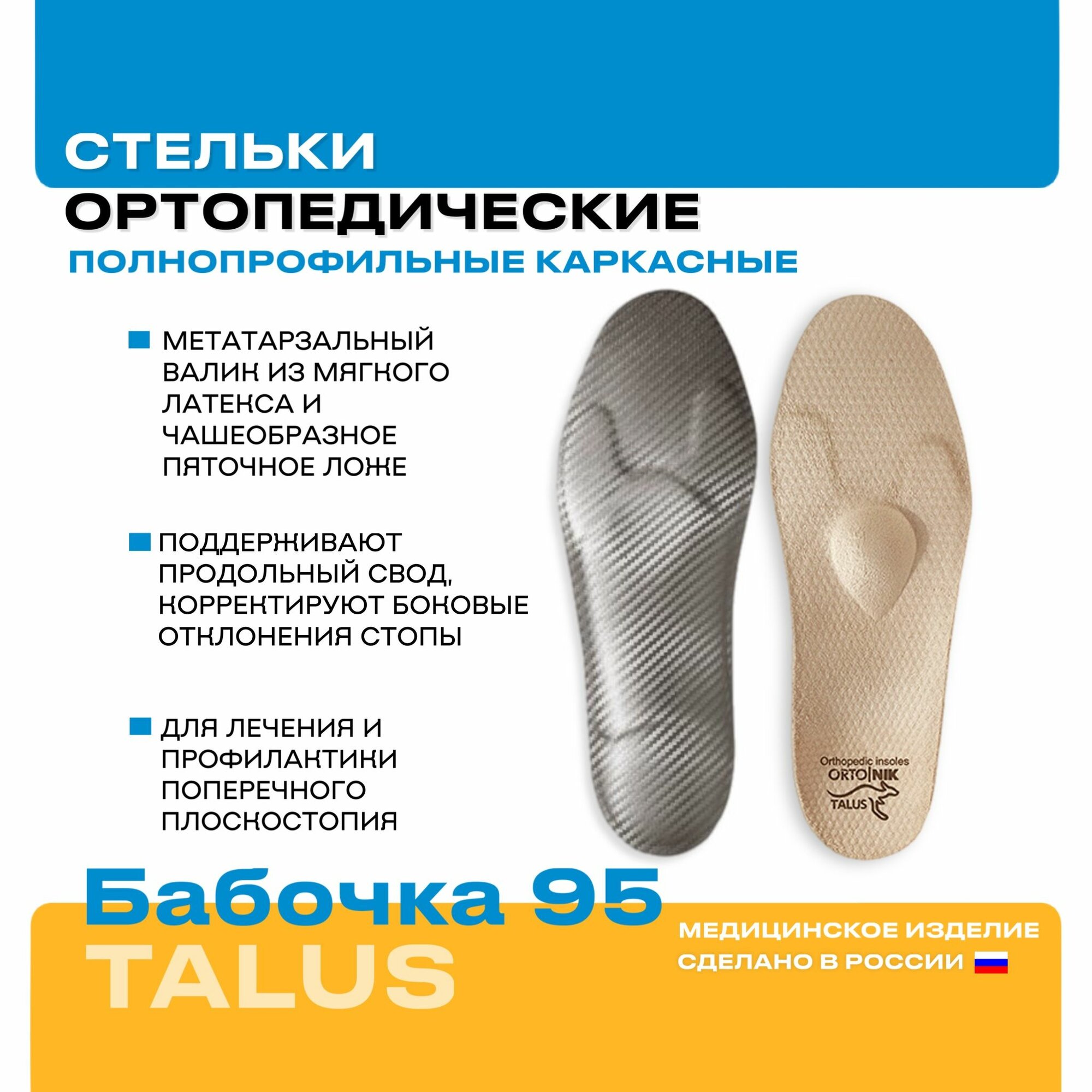 Стельки ортопедические полнопрофильные каркасные Бабочка Talus 95, Размер 43 информация: