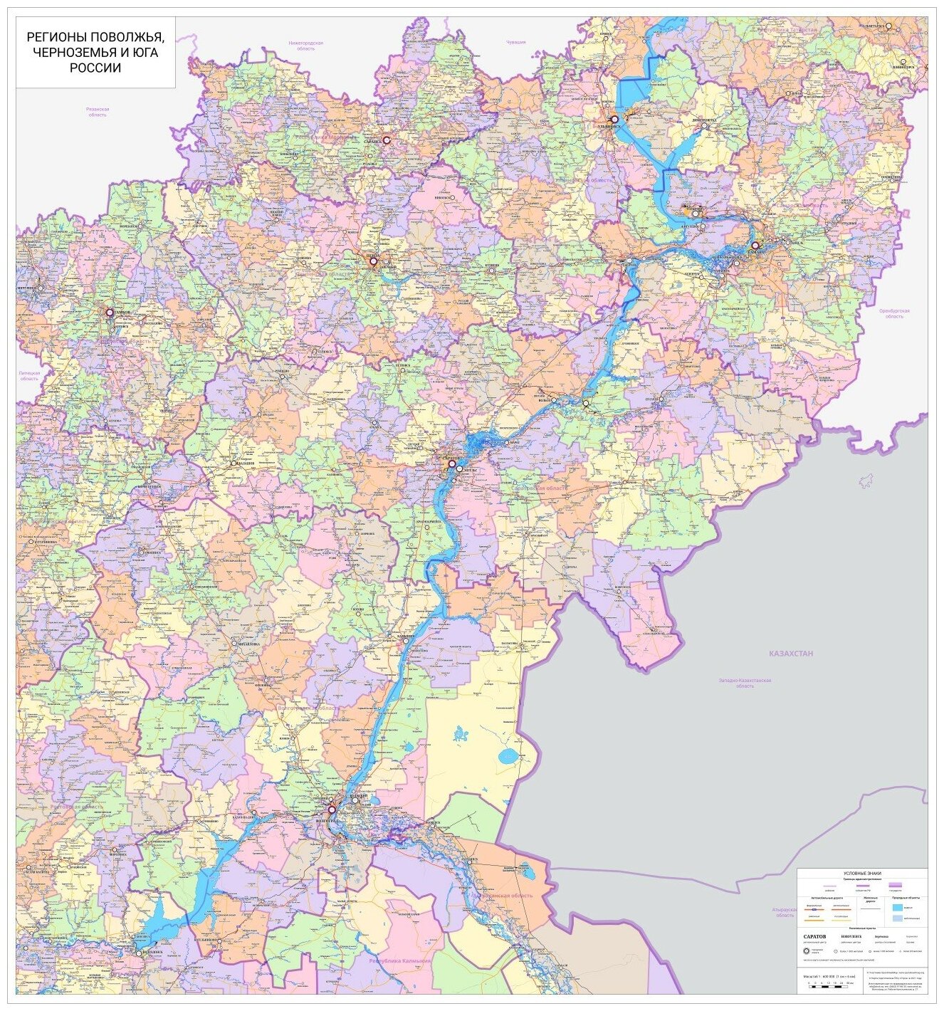 Настенная карта Поволжья и Черноземья (7 областей), на баннере информация: