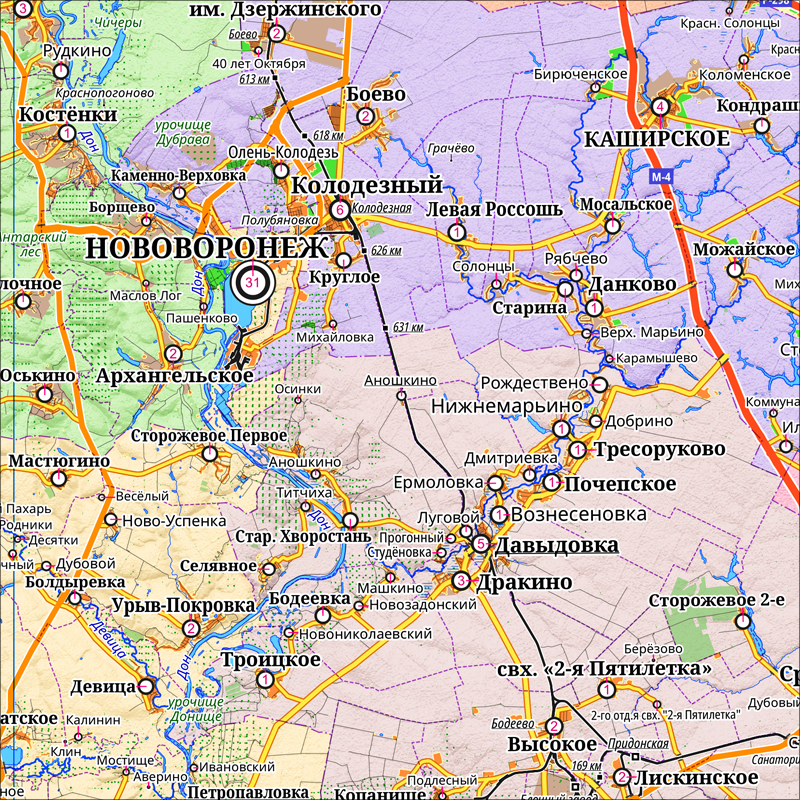 настенная карта Воронежской области 95 х 105 см (на баннере) информация: