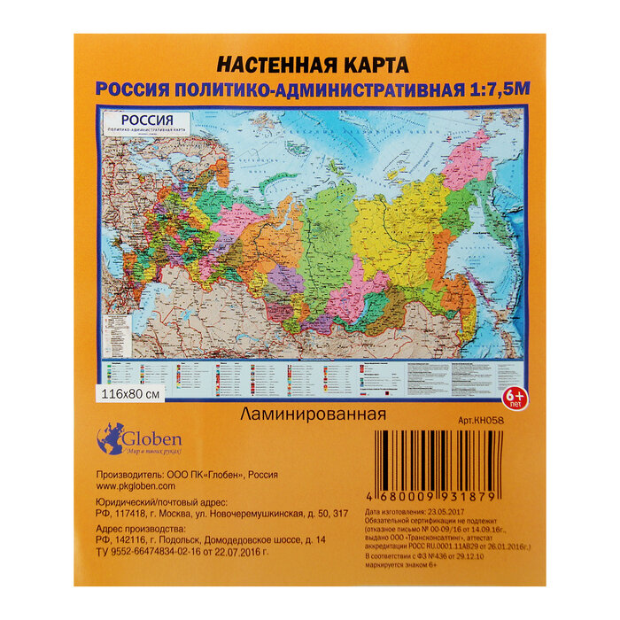 Отзывы на Интерактивная карта России политико-административная, 116 х 80 см, 1:7.5 млн, ламинированная