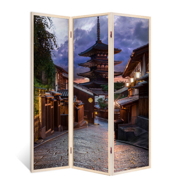 10 цен на Ширма перегородка Вид на пагоду близ Киото 3 створки кремовый дуб 176х140 см