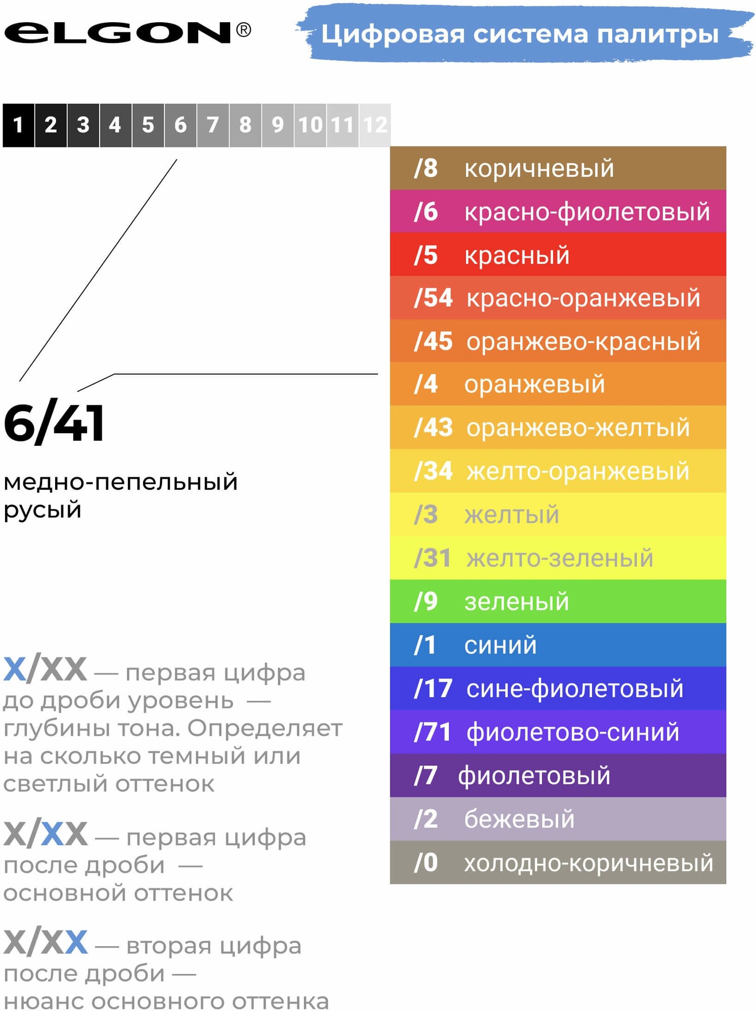 Стойкая краска для волос профессиональная Elgon Get the Color New 7/1 Русый Пепельный, 100 мл 1 650 ₽