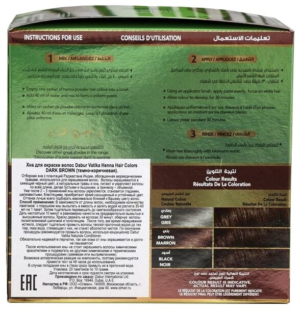 Краска для волос Хна Henna Dabur Vatika Brown (Коричневая Дабур), 6x10г