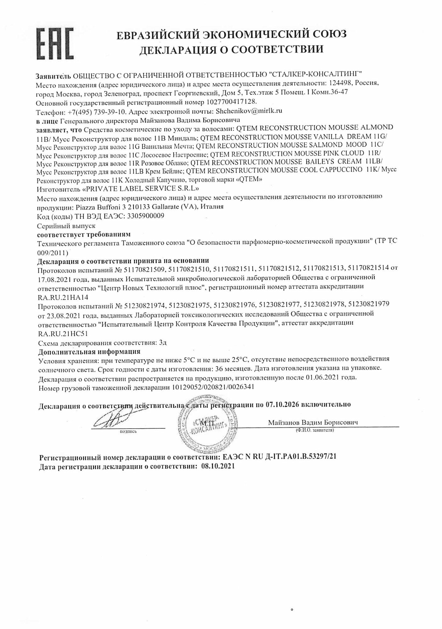 QTEM / RECONSTRUCTION MOUSSE Salmon Mood 11C / Мусс реконструктор для волос (лососевое настроение), 250 мл