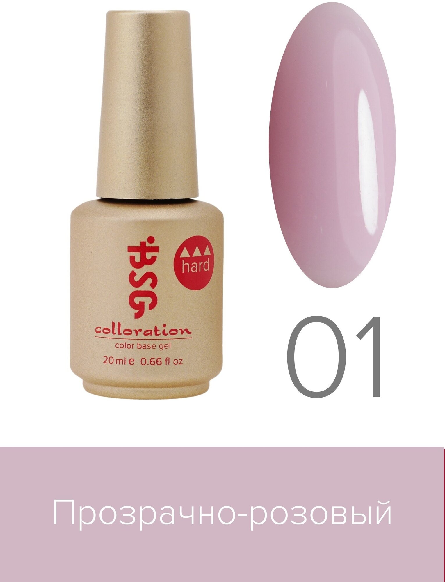 10 цен на BSG Цветная жесткая база Colloration Hard №01 - Прозрачно-розовый оттенок (20 мл)