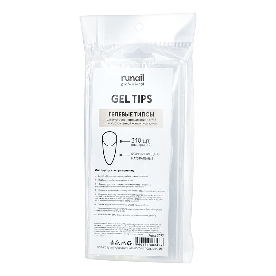 Типсы гелевые для экспресс наращ/ногтей наб 240шт форма миндаль полн/покр натур п/кор RuNail RuNail .