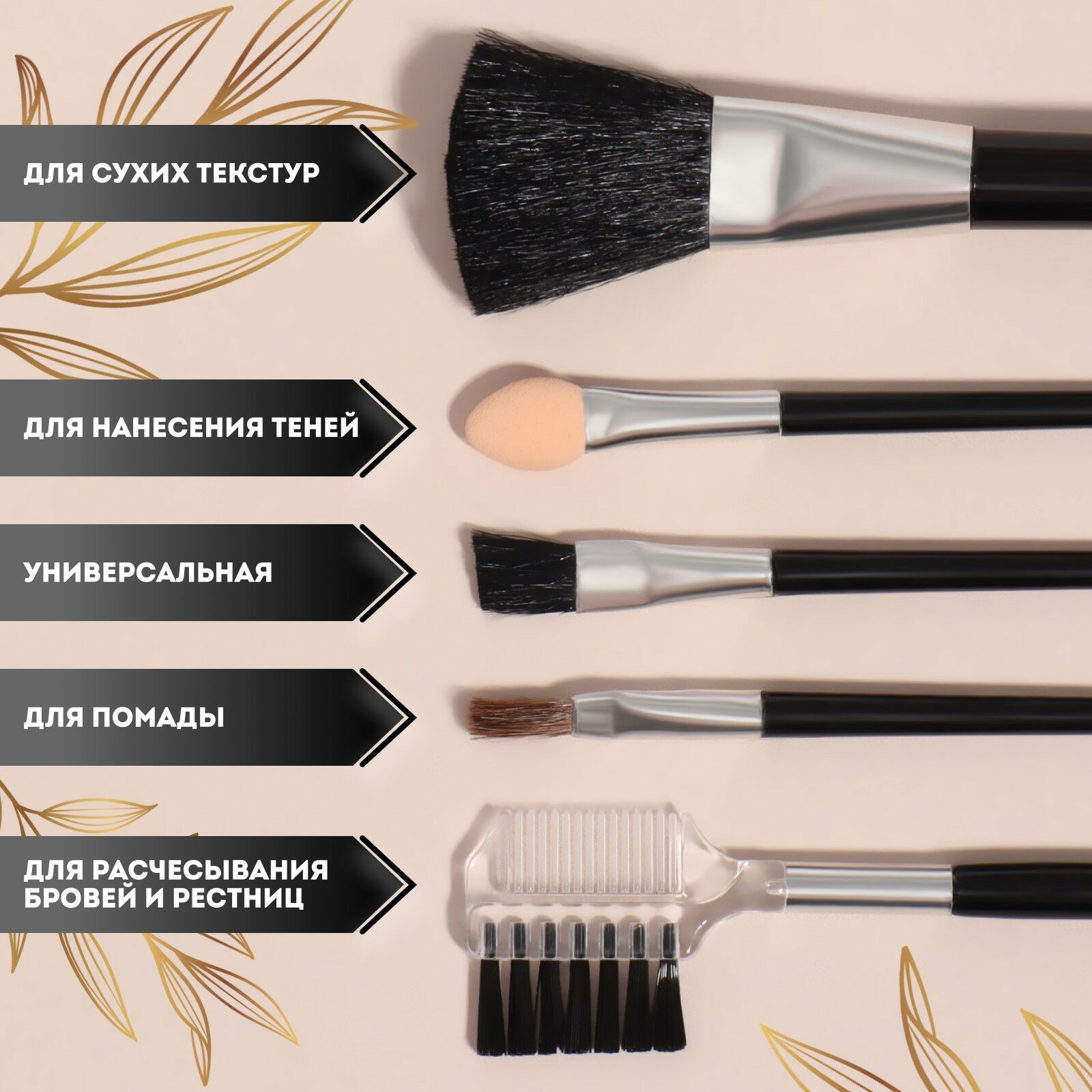 10 цен на Набор кистей для макияжа "Compact", 5 предметов, футляр с зеркалом, цвет чёрный