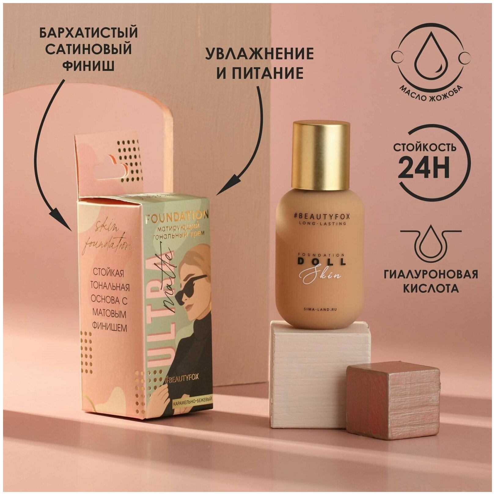 Beauty Fox Тональная основа с гиалуроновой кислотой и маслом жожоба Ultra matte, оттенок 02, карамельно-бежевый, 40 мл информация:
