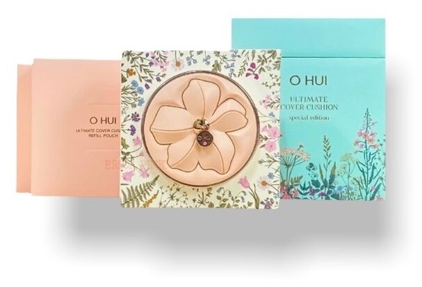 10 цен на O HUI Кушон антивозрастной.тон1 (MIlk Beige) ULTIMATE COVER LIFTING Flower Edition SPF50+/PA +++