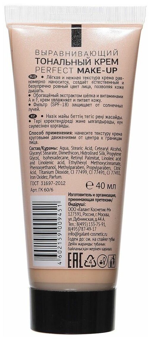 Тональный крем Galant Visage PERFECT MAKE-UP т.06 Золотистый бежевый 40 мл информация: