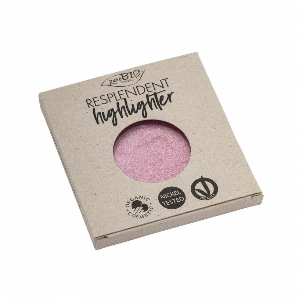 Пудра-хайлайтер для лица PuroBio, оттенок 02 - розовый, рефил, 9 грамм