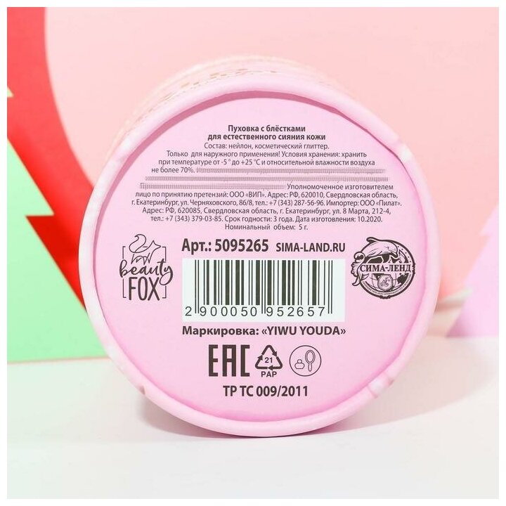 Пуховка с блестками для естественного сияния кожи "Beauty dust" 5095265 информация: