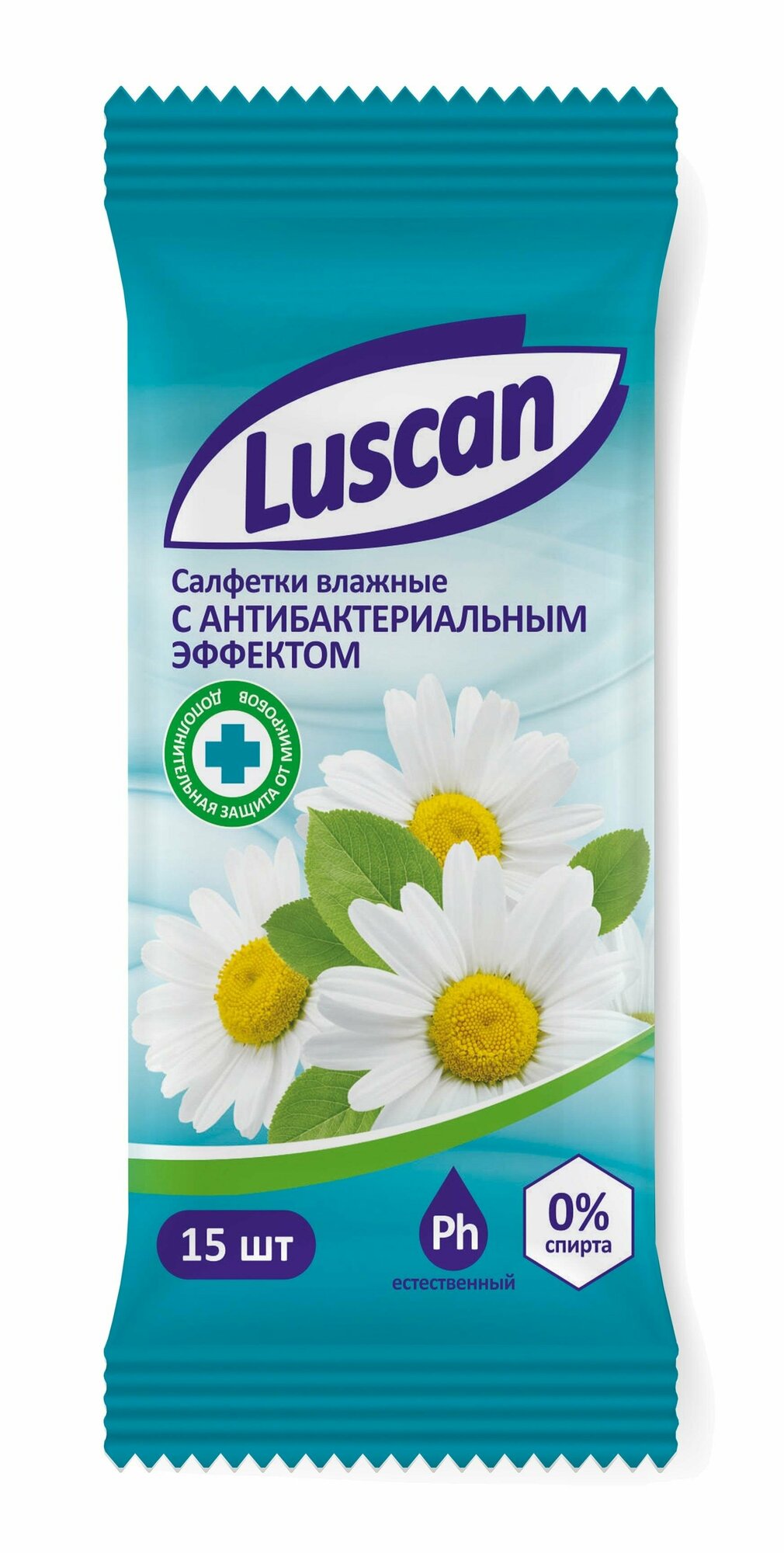Влажные салфетки антибактериальные Luscan 15 штук в упаковке