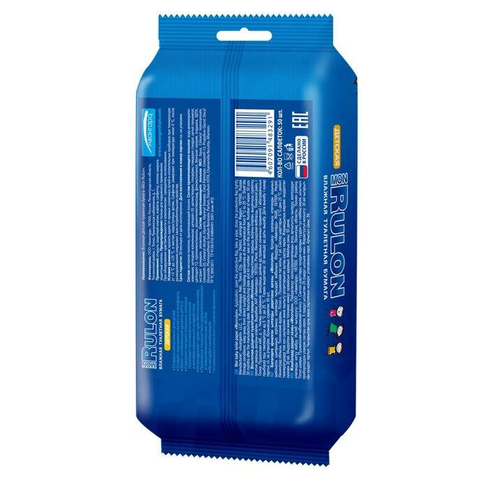 Туалетная бумага Mon Rulon, влажная, детская, 50 шт. информация: