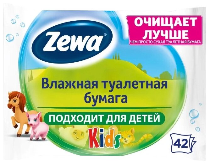 Влажная туалетная бумага Zewa Kids, липучка, 42 шт., 1 уп.