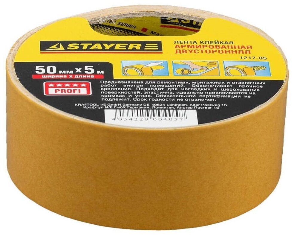 10 цен на Двухсторонняя клейкая лента на полипропиленовой основе, STAYER 1221-50-05, 50мм х 5м