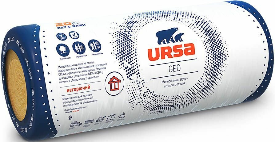10 цен на Урса Гео М-11/50Ф утеплитель на фольге для саун 12500х1200х50мм (15м2=0,75м3) / URSA Geo M-11/50Ф минеральная вата для бань фольгированная 12500х1200х