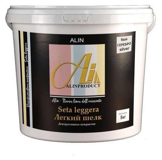 Краска, Декоративное покрытие ALINPRODUCT Шелк Сета Seta база серебро - перламутровая декоративная штукатурка для имитации мокрого шелка Акриловая, Фактурная, *Декоративная, Глянцевое покрытие, 5 кг, серебристый информация: