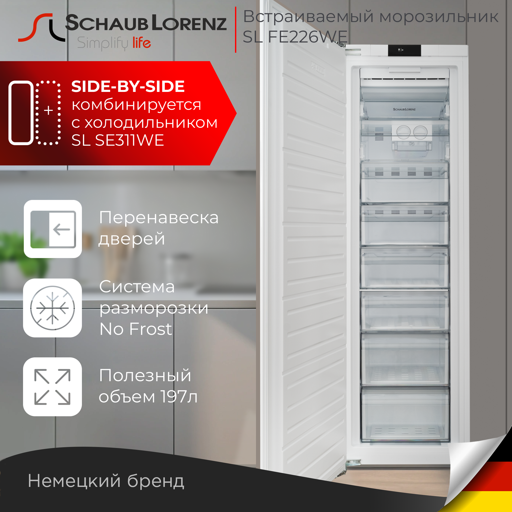 Морозильная камера встриваемая Schaub Lorenz SL FE226WE, No Frost, сенсорное управление, возможность установки Side-by-Side