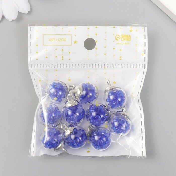 Арт Узор Подвеска декоративная для творчества стекло "Шар - камешки" синяя d1,6 см набор 10 шт