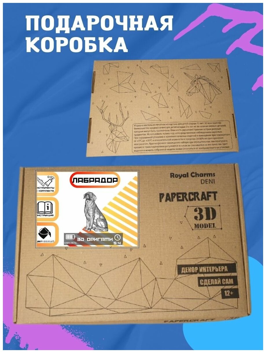 3D-конструктор оригами фигура Лабрадор подарочный набор на новый год 2022 для сборки полигональной фигуры информация: