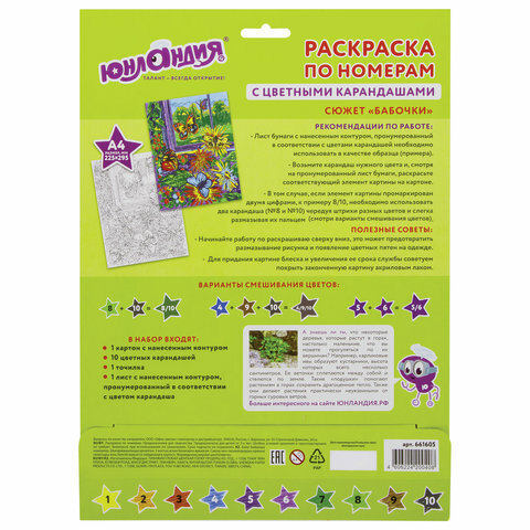10 цен на Раскраска по номерам А4, комплект 5 шт., юнландия "бабочки", С цветными карандашами, на картоне, 661605
