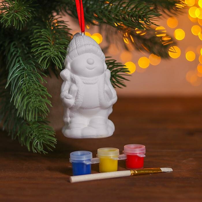 10 цен на Школа талантов Ёлочное украшение под раскраску "Милый снеговик" с подвесом, краска 3 цв. по 2 мл, кисть