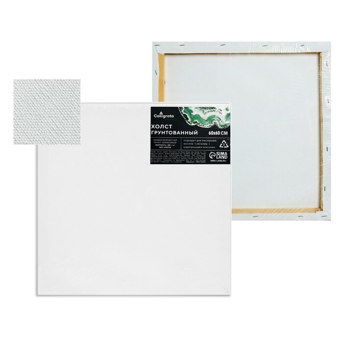 Холст на подрамнике, хлопок 100%, 1,6 х 60 х 60 см, акриловый грунт, среднезернистый, 380 г/м2./В упаковке шт: 1 информация:
