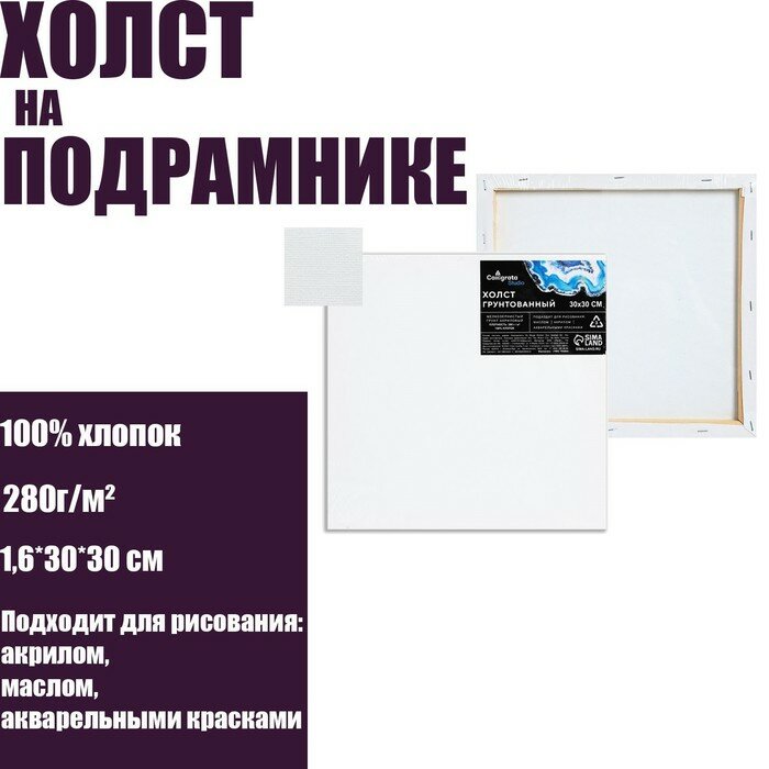 10 цен на Calligrata Холст на подрамнике, хлопок 100%, 1,6 х 30 х 30 см, акриловый грунт, мелкозернистый, 280 г/м²