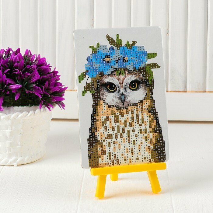 10 цен на Алмазная вышивка с частичным заполнением «Совушка с венком из цветов», с подставкой, размер картины: 10 × 15 см