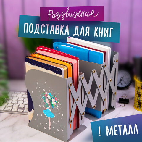 10 цен на Подставка-держатель для книг и учебников юнландия "Flower girl", раздвижная, металлическая, 237902