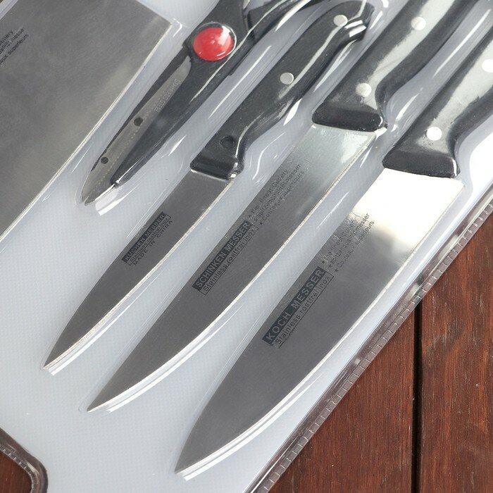 10 цен на Набор кухонный, 6 предметов: ножи 10 см, 15 см, 15 см, 18 см, ножеточка, доска, цвет чёрный