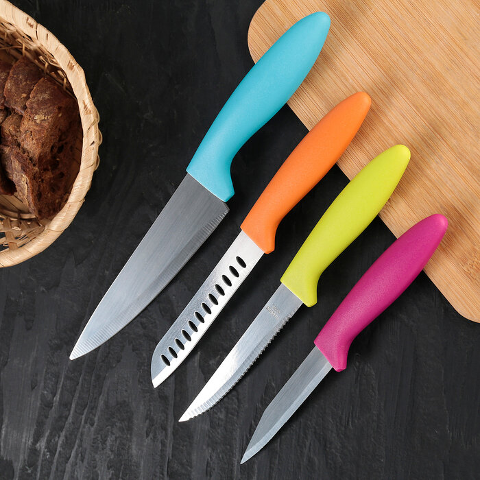 10 цен на Набор кухонных ножей, лезвие: 15 см, 11,5 см, 11 см, 8 см, на подставке, цвет микс