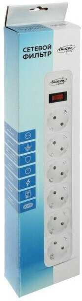 Сетевой фильтр Luazon Lighting 4457529, 6 розеток, 5 м, с/з, 10А / 2200 Вт