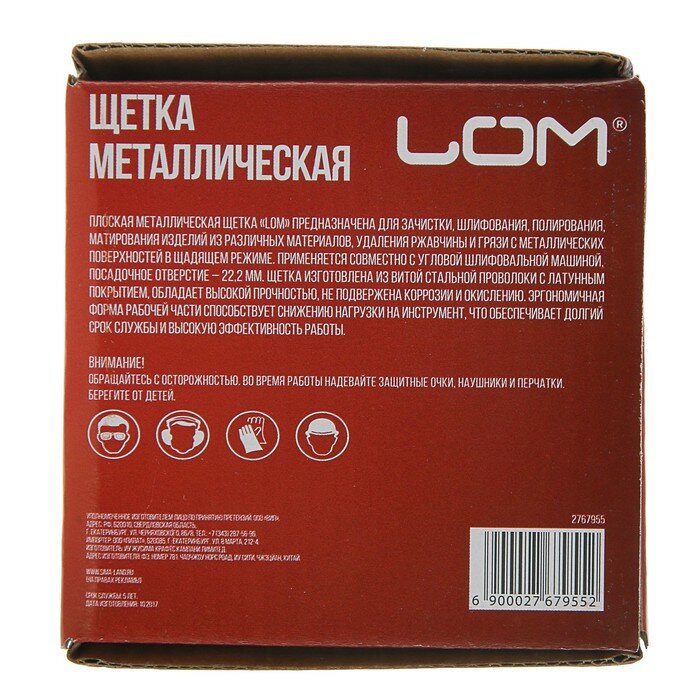 LOM Щетка металлическая для УШМ ЛОМ, плоская, посадка 22 мм, 100 мм./В упаковке шт: 1