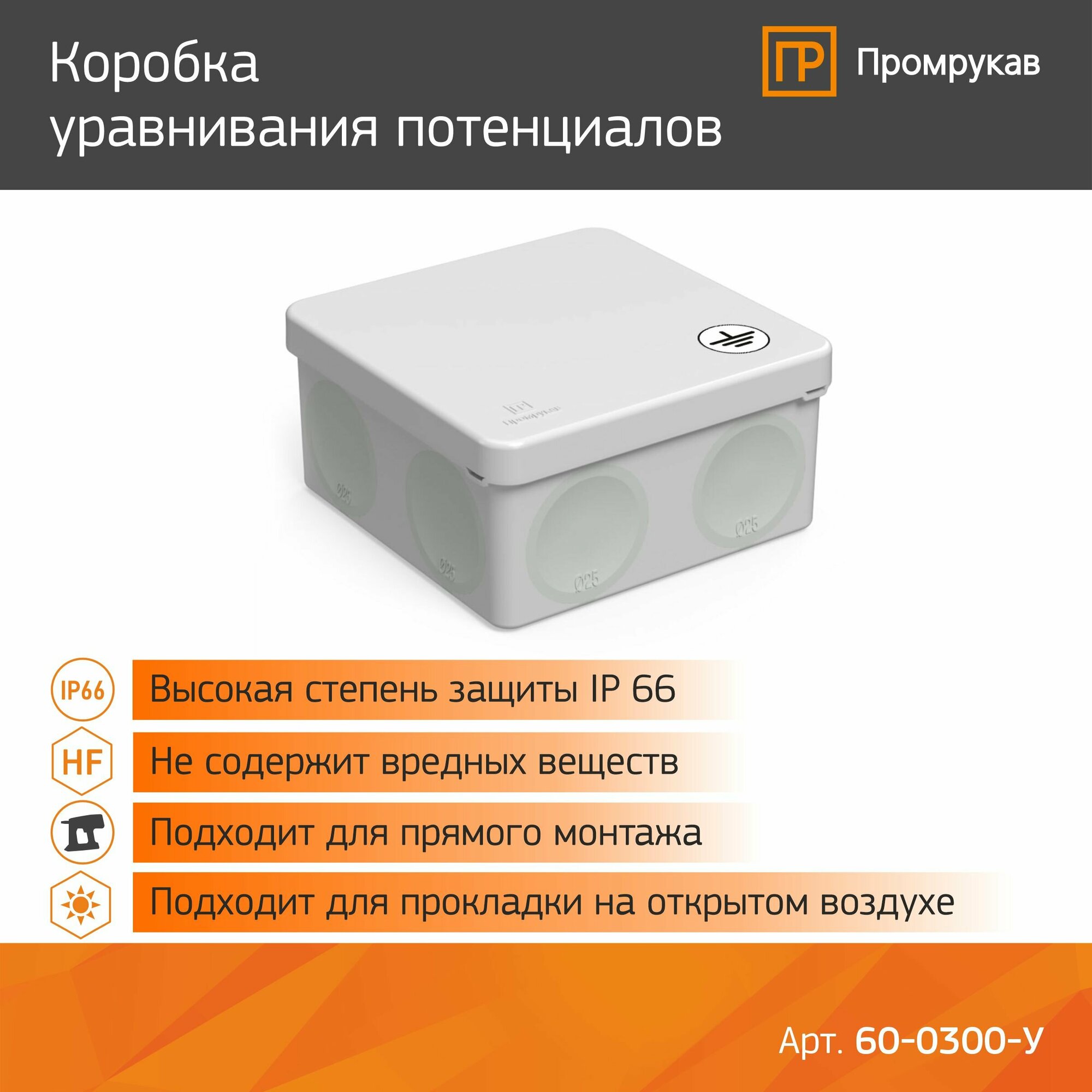 Двухкомпонентная коробка уравнивания потенциалов Промрукав КУП 60-0300-У для прямого монтажа безгалогенная HF 100х100х50 1 шт 60-0300-У информация: