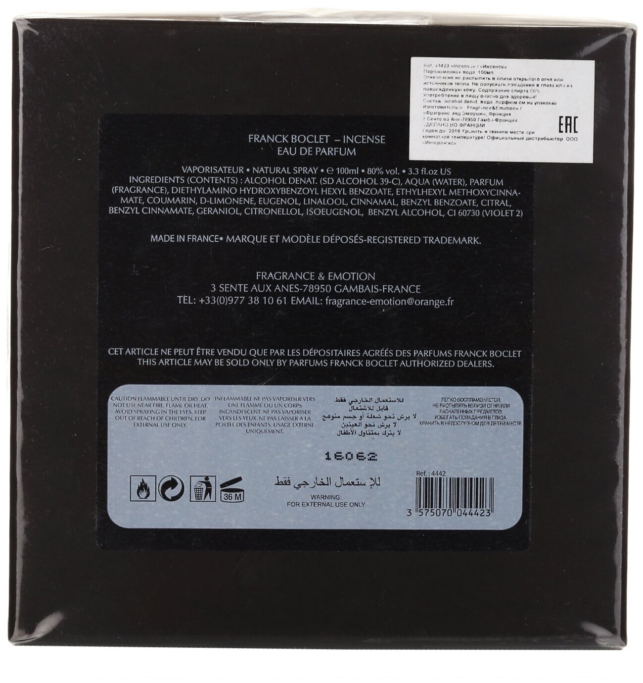 Туалетные духи Franck Boclet Incense 100 мл информация: