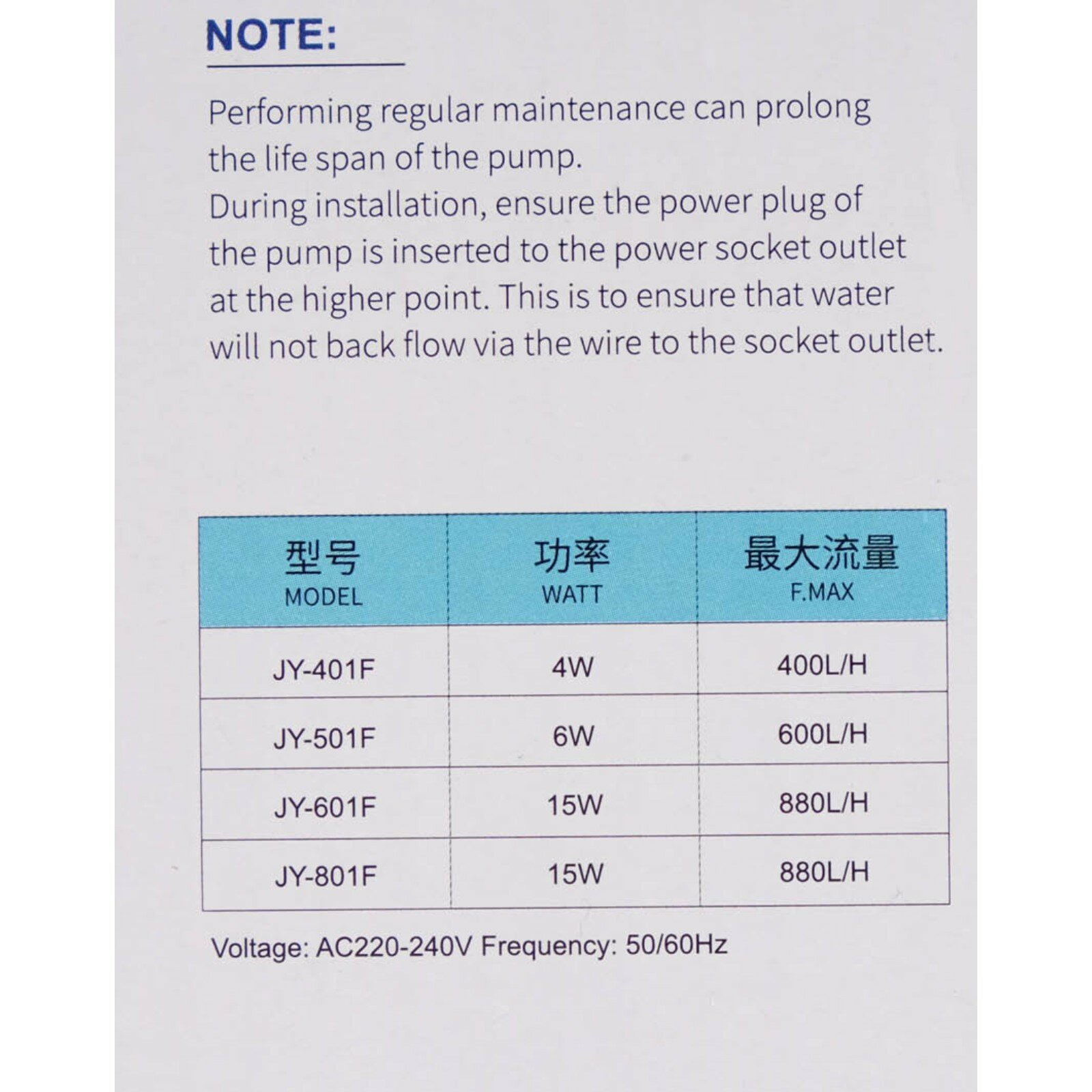 Фильтр внутренний JINGYE, 400 л/ч, 4 Вт информация: