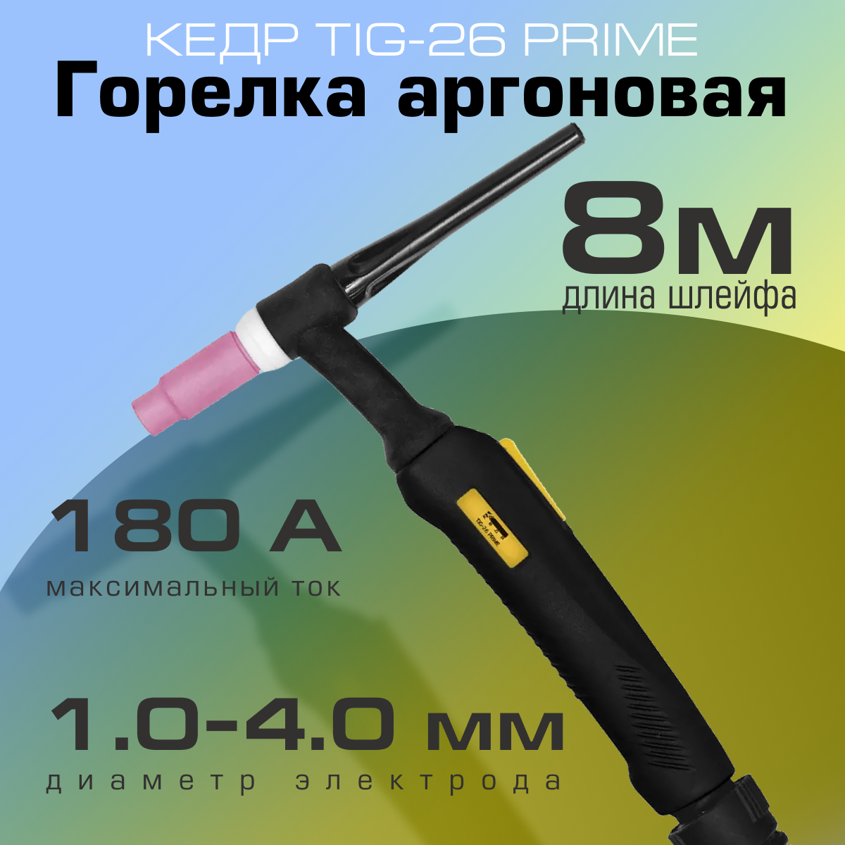 10 цен на Горелка аргоновая кедр TIG-26 PRIME (1 кнопка, СКР35-50,газ быстросъем вст, 2-pin мал.) 8,0м