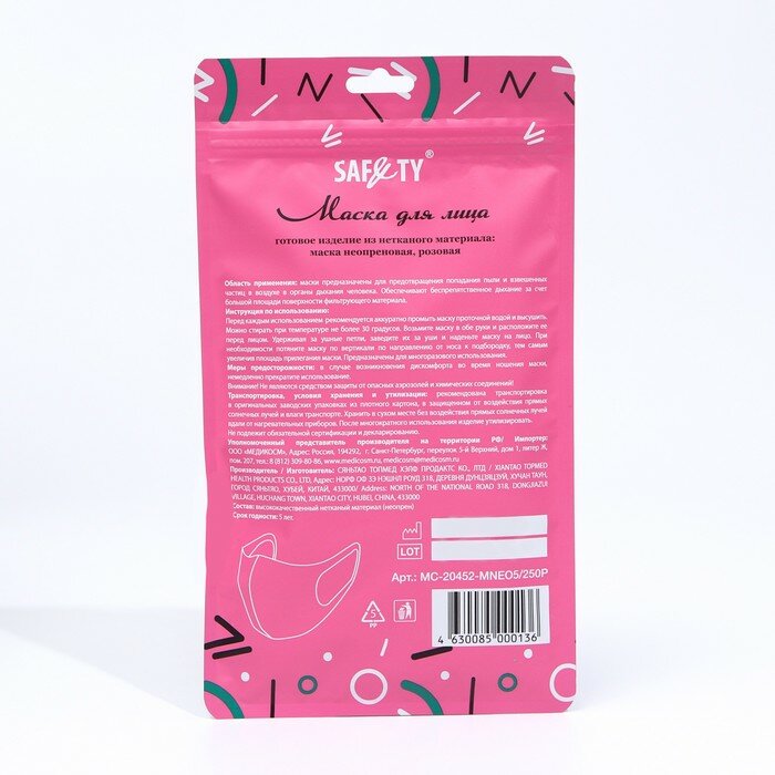 Маска защитная Safety, неопреновая, розовая, 5 шт. информация: