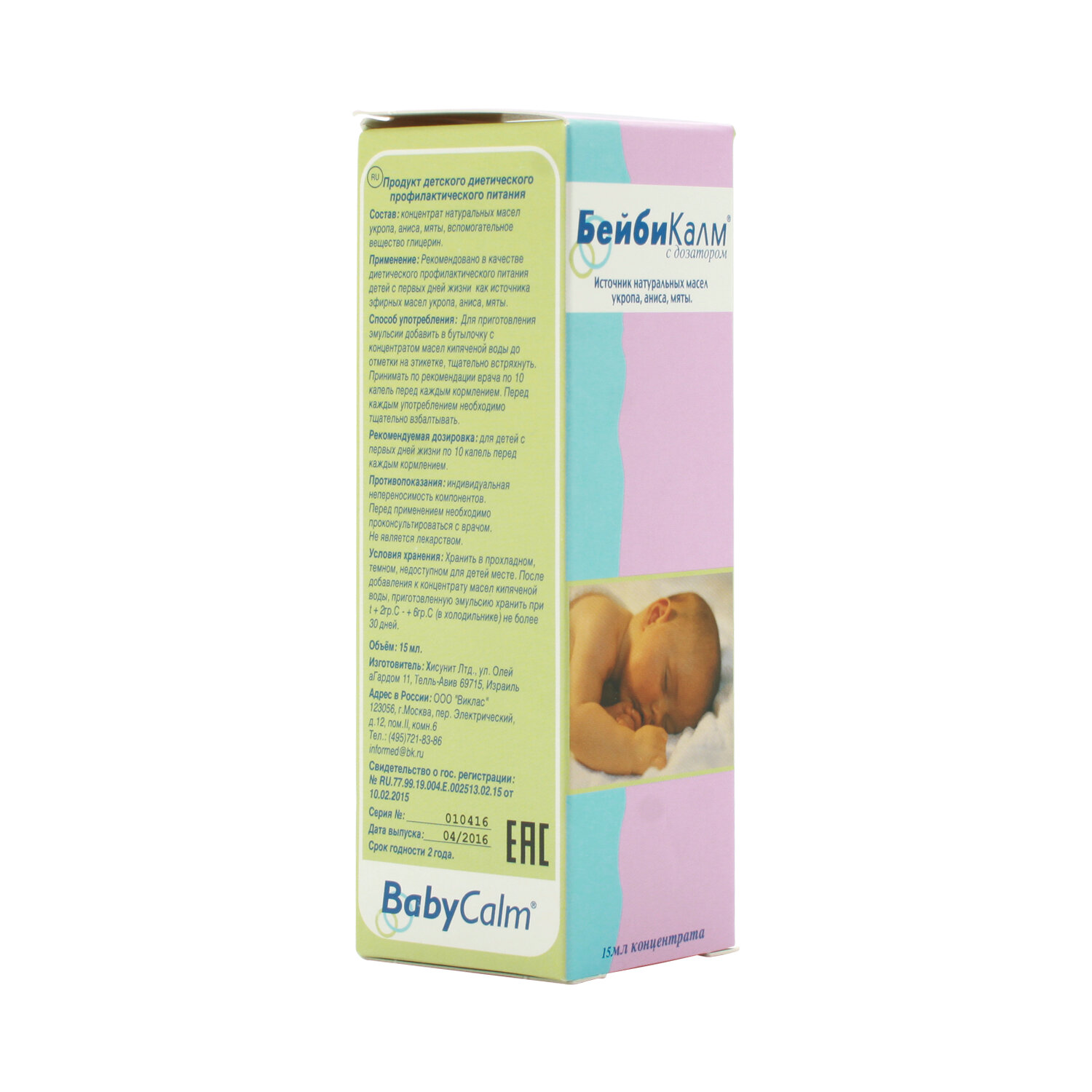 | Способ применения и дозы | Для детей первого года жизни по 10 капель Бейби Калм перед каждым кормлением. Приготовленную эмульсию хранить в холодильнике не более 1 месяца. |
