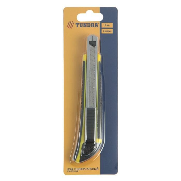 Нож универсальный тундра, 2К корпус, металлическая направляющая, 2 лезвия, 9 мм информация: