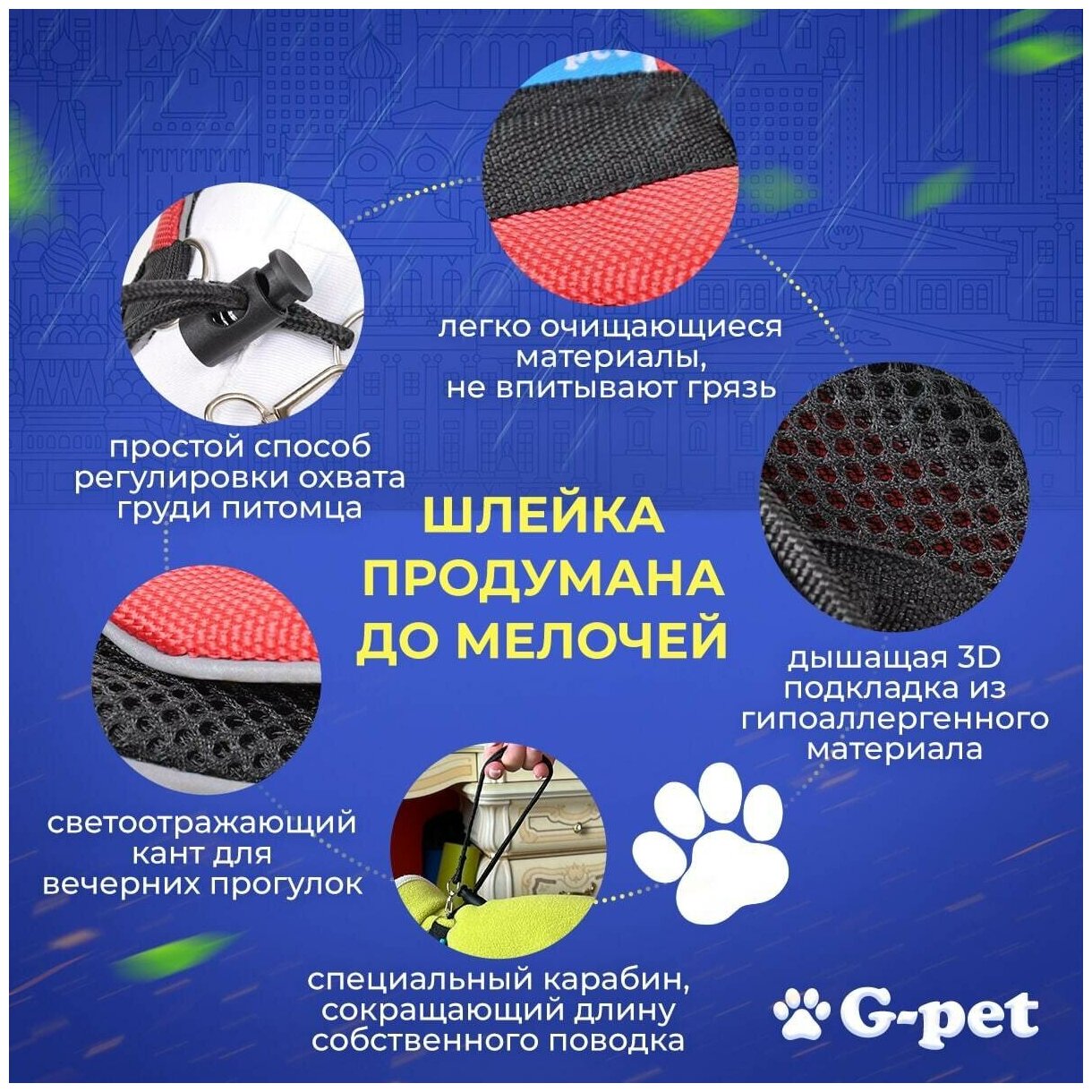 Авторегулируемая анатомическая шлейка для собаки кошек котят до 10 кг G-pet красная M (40-52 см) для кота, шпица, мопса, таксы, джек рассел терьера