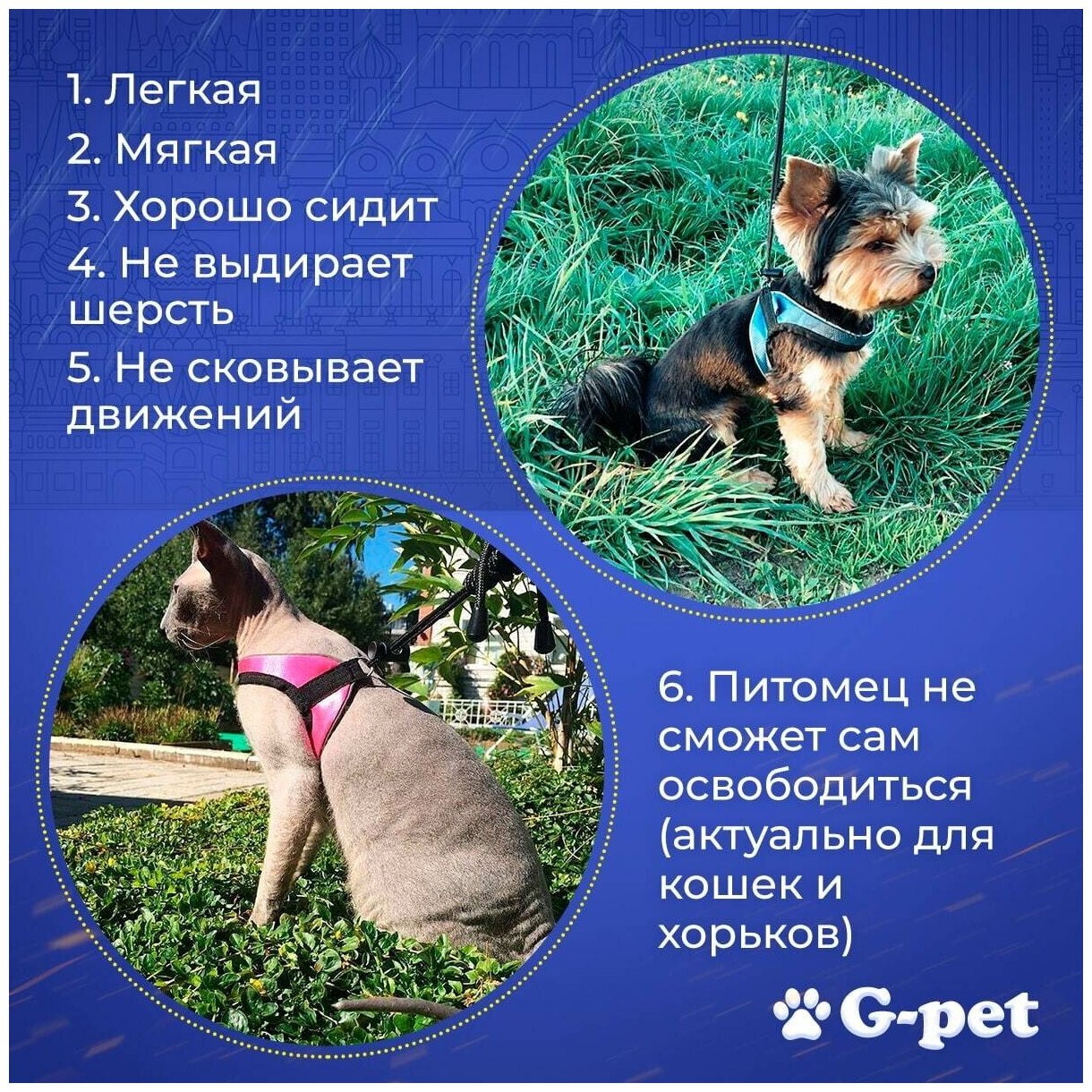 Авторегулируемые шлейки для мелких маленьких пород собак и кошек до 10 кг G-pet розовая р-р M (40-52 см) для щенков средних пород, для кота, шпица