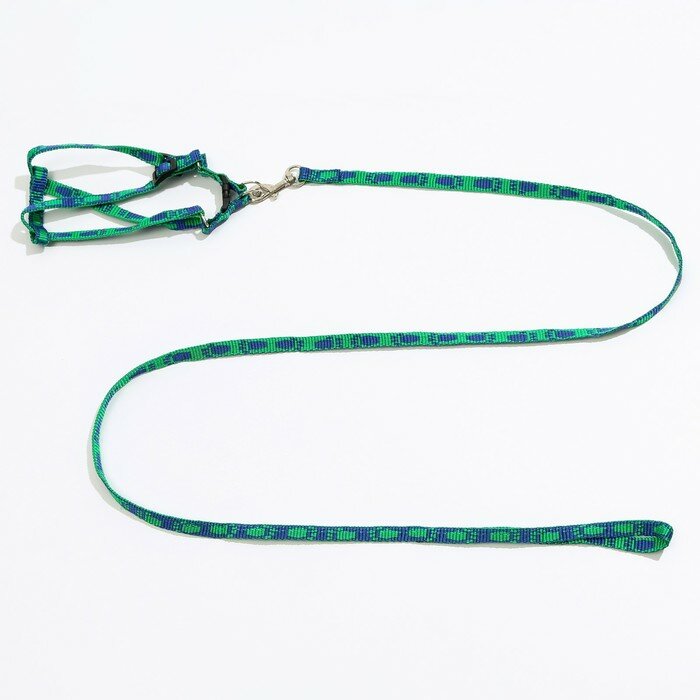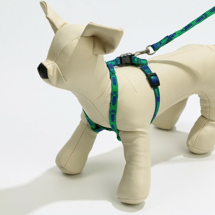 10 цен на Пижон Комплект "Большая лапа", ширина 1 см, поводок 120 см, шлейка 25-36 см, сине-зелёный